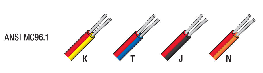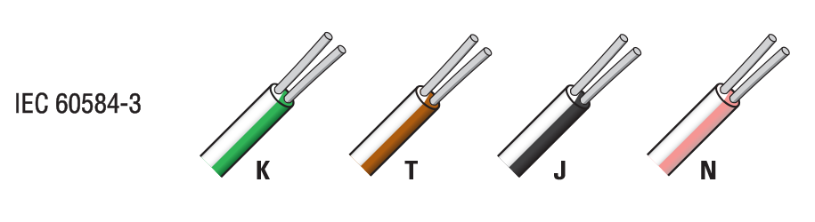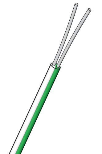Egy közös PTFE szigetelésben futó két 1/0.376mm (27AWG) átmérőjű hőelemhuzal (2.3mm-es külső átmérőjű kör kialakítású kábel). K, J, T és N típusban választható. A közös szigetelésű PTFE kábeleink gáz-, gőz- és vízállóak, így ideálisak autoklávokban való használatra. Alapból IEC szerinti színkóddal kérhetőek, de ANSI-ra is van lehetőség. |